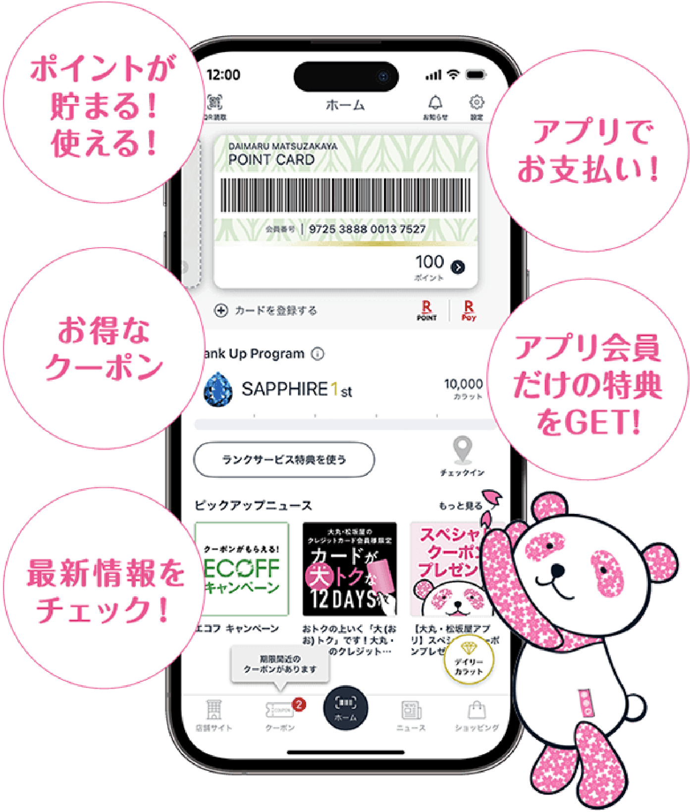 大丸・松坂屋でのお買い物の際、アプリのホーム画面をご提示ください。