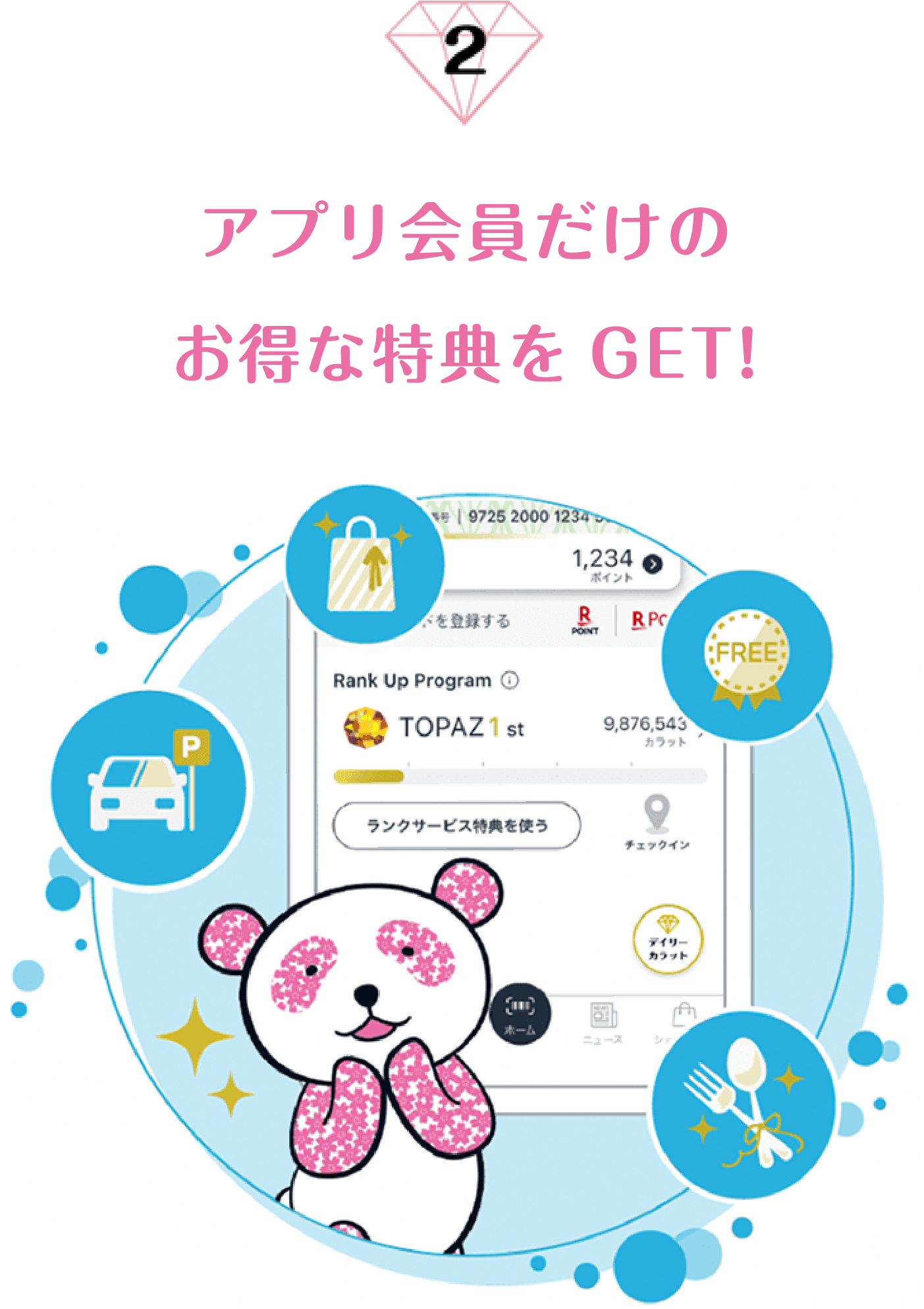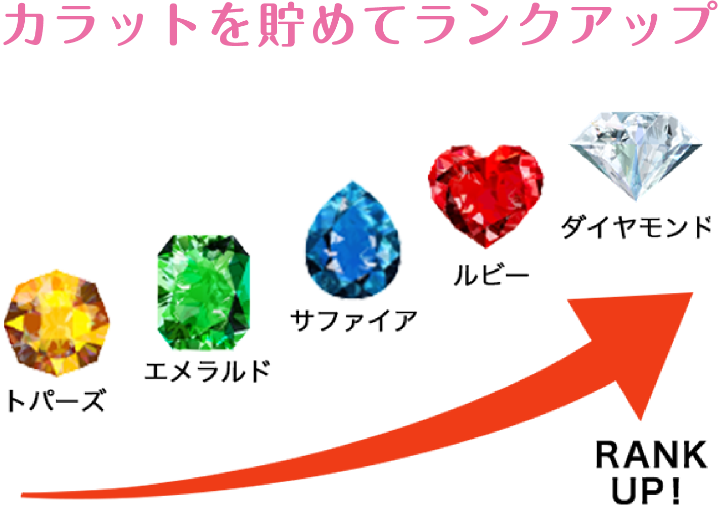 「カラット」を貯めれば貯めるほどランクがアップして豊富な特典をご利用いただけます。
