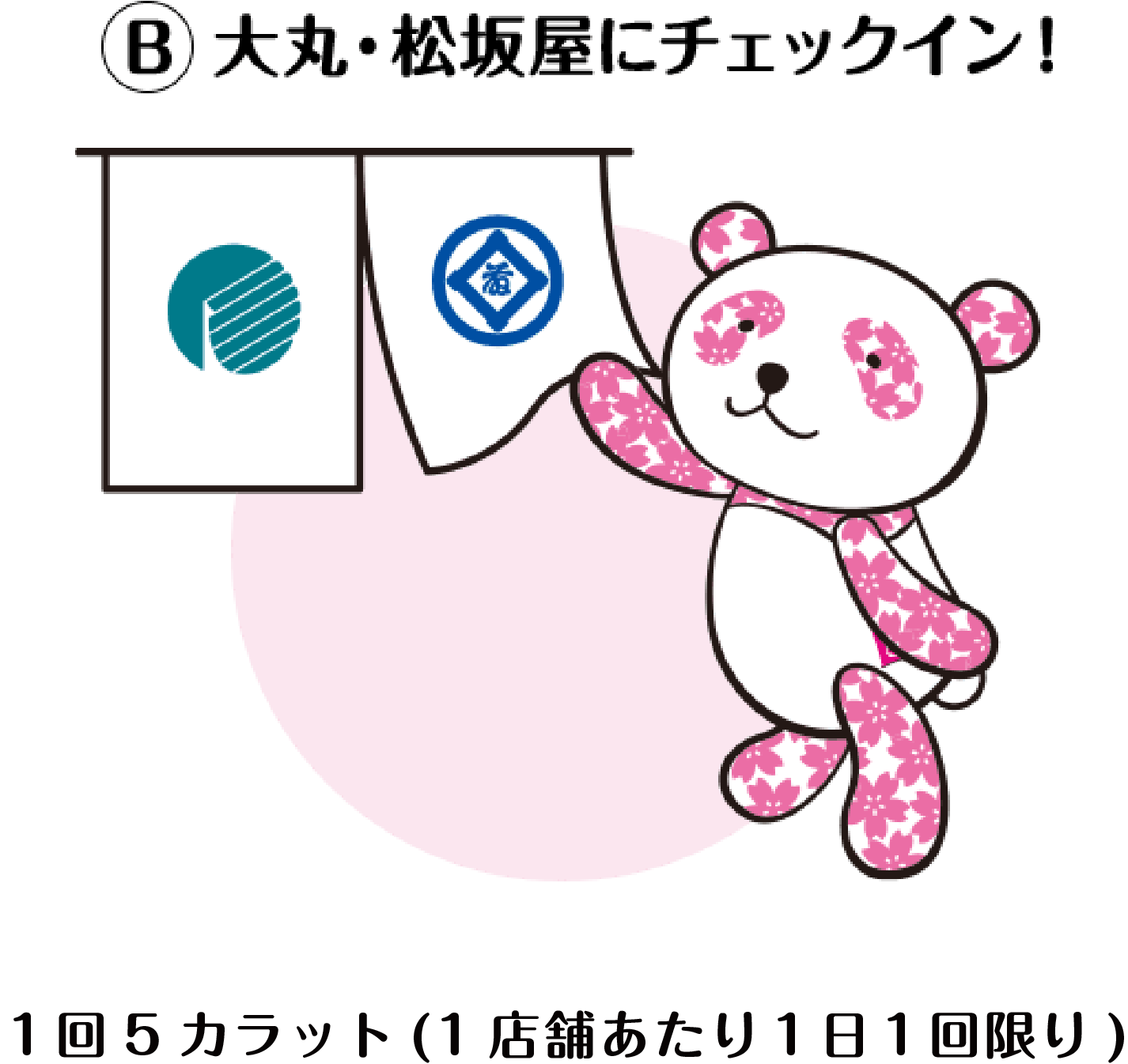 大丸・松坂屋店内でアプリを起動し「チェックイン」をタップしてください。