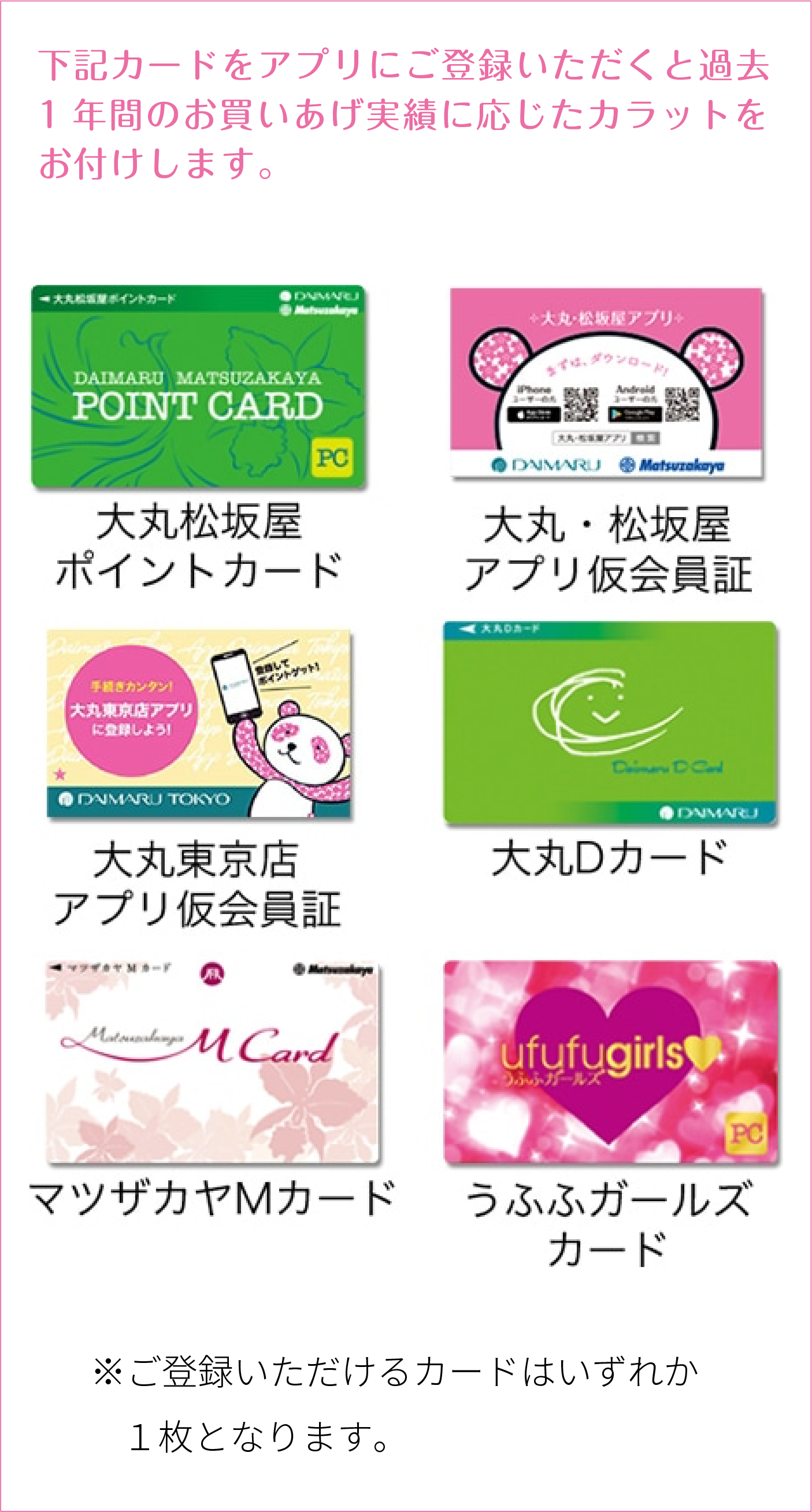 ※博多大丸カードでのお買いあげにつきましてはカラット付与の対象外です